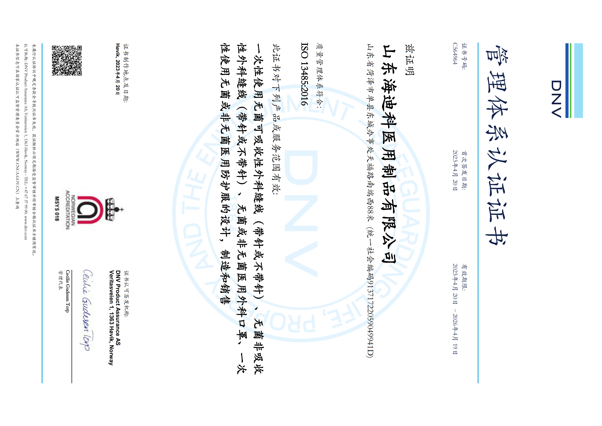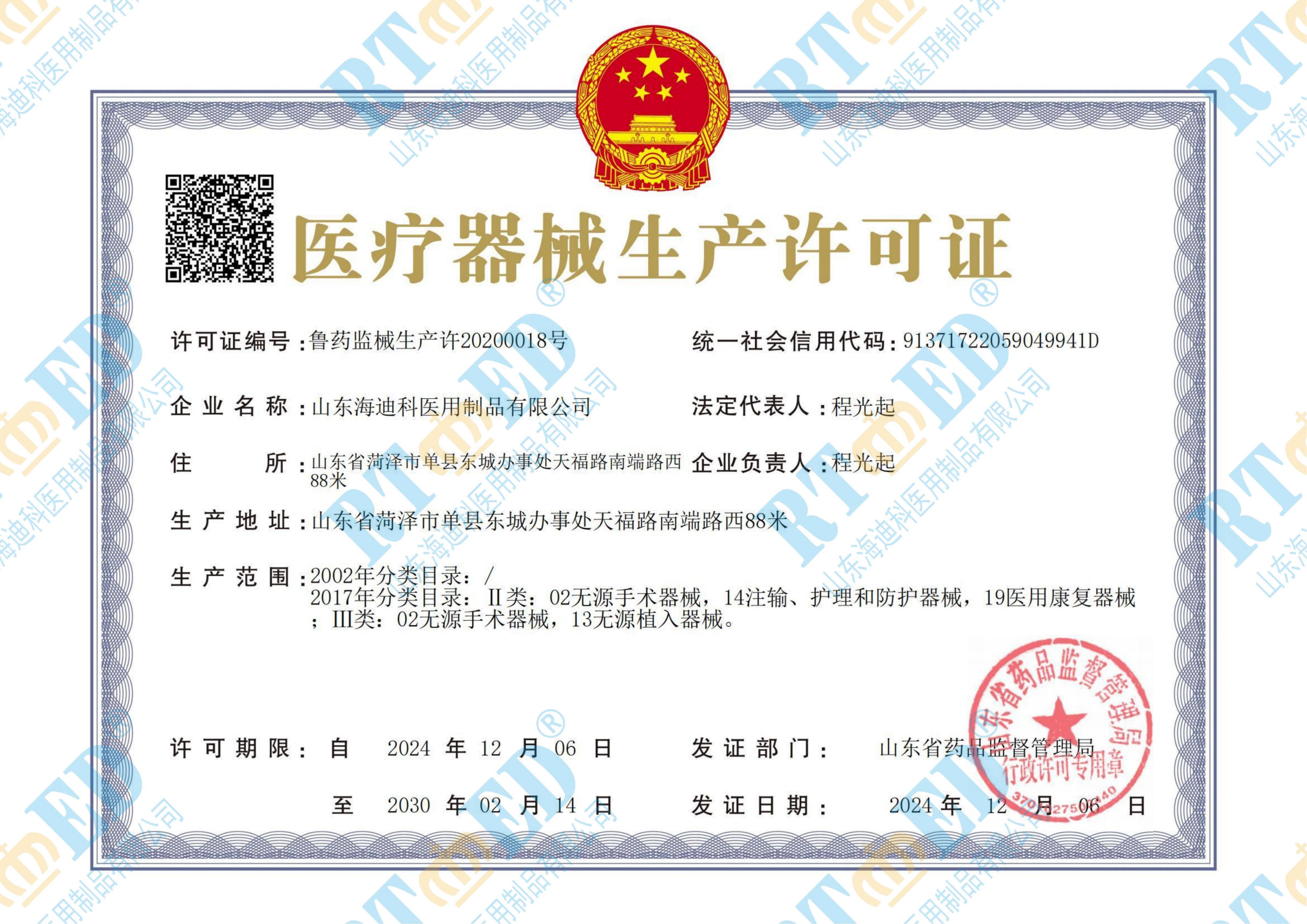 海迪科醫(yī)療器械生產(chǎn)許可證